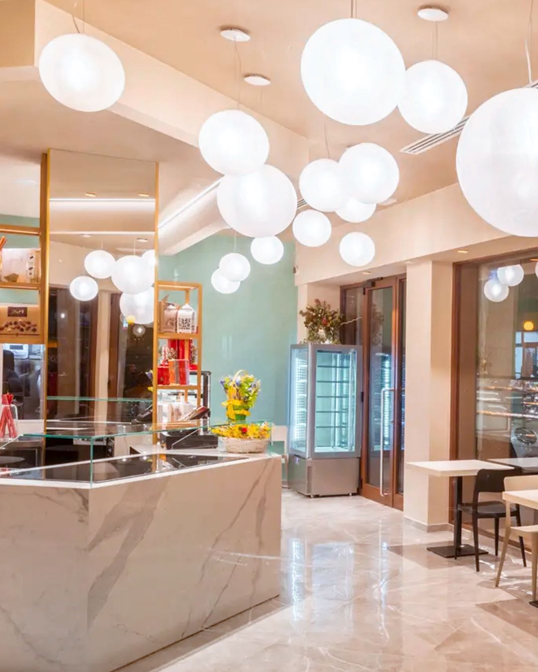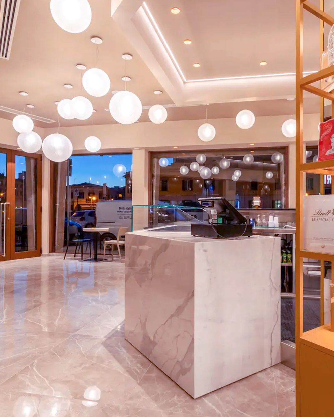 In the heart of Tuscany, the Julie pastry shop embraces a contemporary sense of elegance with soft lines, warm tones and natural textures. The interior project, developed by contractor Modulo Design, features Murano by SLIDE as a key lighting element—bringing personality and lightness to the space.