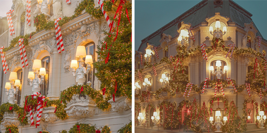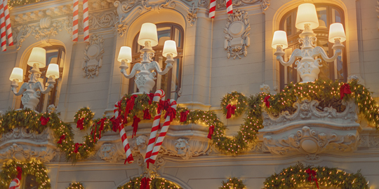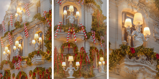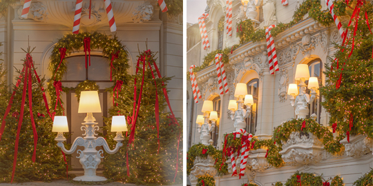 For Christmas 2023, the whole façade was enriched by a rich-in-details setting and the protagonists were our majestic King of Love floor lamps.