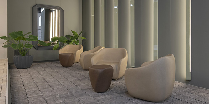 The undisputed star of our stand was the new REBORN collection, designed by EcoBirdy and made entirely of recycled plastic. A project that tells the story of our commitment to sustainable design without compromising on aesthetics and functionality. The essential and contemporary shapes of REBORN created a coherent, welcoming space that respects the planet.