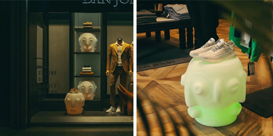Dan John è un brand Made in Italy di moda, che ama rendere accessibile a tutti l'eleganza e la raffinatezza italiana della moda maschile. Durante il Salone del Mobile 2023 SLIDE e Dan John hanno collaborato per l'allestimento delle vetrine di uno dei punti vendita nel cuore della capitale lombarda. Il nostro Kroko, disegnato da Marcantonio e realizzato in bio-polietilene, una speciale miscela derivante dalla raffinazione della canna da zucchero, e i Threebù luminosi, si sono sposati perfettamente con la nuova collezione di Dan John, rafforzando il tema della sostenibilità tanto caro a entrabi i brand.
