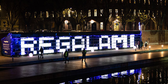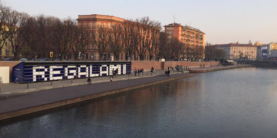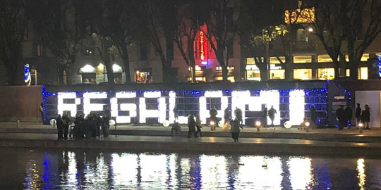 A Natale 2018 la darsena di Milano è diventata un villaggio delle meraviglie, secondo il progetto di AADV Entertainment per Galbani Santa Lucia. Per realizzare il Christmas Village, SLIDE ha contribuito con le lampade galleggianti Acquaglobo personalizzate, che hanno creato la magica atmosfera intorno alla pista di pattinaggio direttamente sull'acqua. Con 119 Cubo luminosi, invece, è stata composta la scritta "Regalami" lunga 30 metri.