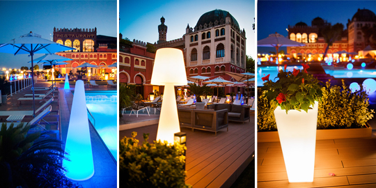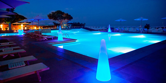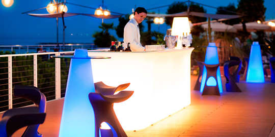 Affacciato sullo scintillante mare Adriatico, l'Hotel Excelsior, con le sue cinque stelle, ha selezionato i mobili luminosi Slide per arredare l'area outdoor piscina. Costruito nel 1908, con la sua regale architettura lussuosa e l'incantevole posizione sulla spiaggia, è oggi una delle destinazioni destinazione più amate da personaggi ricchi e famosi. Un hotel di lusso dotato di ogni comfort e arredato in stile classico. L'area piscina e terrazza hanno invece un tocco moderno e di design grazie agli arredi luminosi e lampade della collezione Slide. Prodotti inseriti nel progetto: Peak tavolo, design Marc Sadler Gloria sedia, Marc Sadler Cono lampada da terra, design Slide Studio Pivot lampada da terra, design Carlo Constantini Break Line e Break Cornen banconi bar, design Slide Studio Peak tavoli luminosi, design Aksu Suardi Koncord sgabello alto, design Karim Rashid Y-Pot vaso luminoso, design Slide Studio Globo lampada da terra, design Slide Studio.
