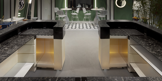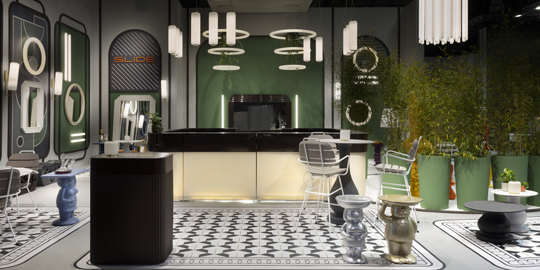 In occasione del Salone del Mobile 2023, siamo stati lieti di invitare i visitatori al nostro "Cordiale Cafè", uno stand interamente Art Decò progettato da Roberto Paoli, autori della collezione Cordiale. Lo stand, composto da diverse nicchie che incorniciavano le novità, aveva al centro una composizione realizzata con i banconi bar Cordiale e Cordiale Corner. Tantissime le lampade: dai best seller Stiletto, Stiletto Applique, Stiletto Shard Applique e Luna, alle raffinate Cordiale Lumière e Cordiale Applique, fino alle novità Ottocento Lamp di Paola Navone, Cordialina e Kristalina. Le altre novità presentate sono state: il tavolo alto Ottocento Up, il tavolino di servizio Together, la panca Enjoy, gli specchi Cordiale Mirror e Giotto Mirror.
