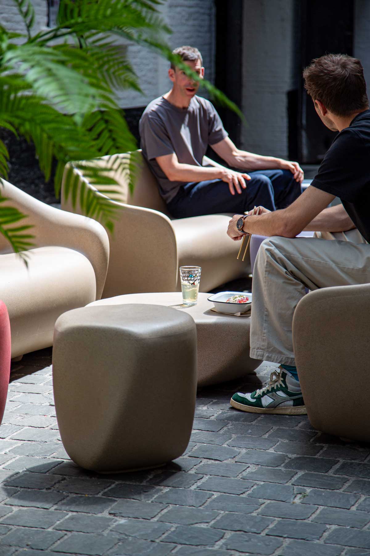 All’interno del suggestivo Felix Pakhuis, un ex magazzino riconvertito con pareti in mattoni imbiancati e ampie finestre in acciaio che richiamano l’anima industriale del luogo, la collezione Reborn crea un angolo lounge accogliente e rilassato, dove gli ospiti possono incontrarsi, condividere momenti e gustare piatti da tutto il mondo.